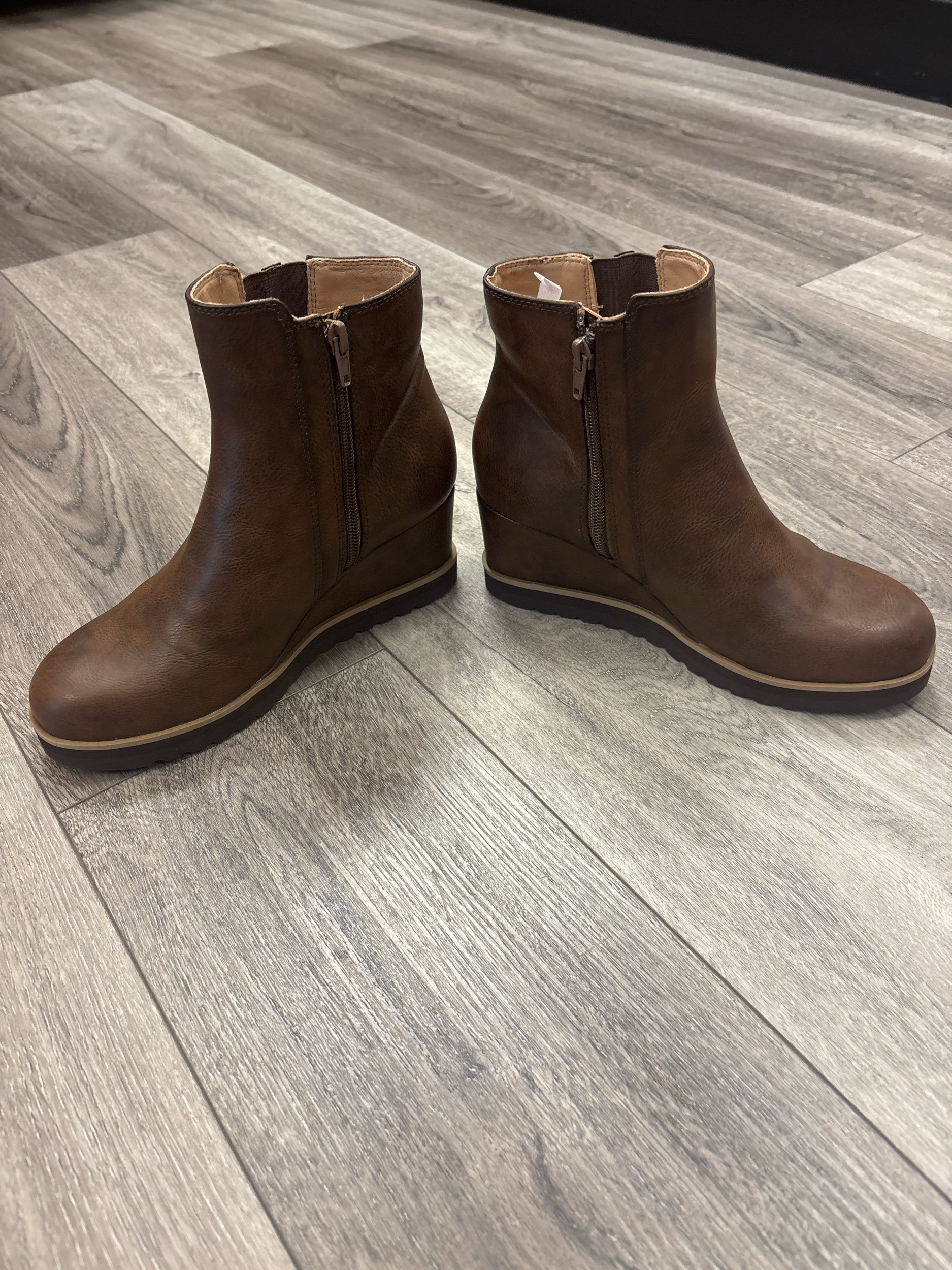 Image 1 of 2 Image 2 of 2 YellowBox Ceffa Brown Boots $90.00 Yellow boots with zipper inside and rounded toe with a platform Size: 7 7.5 8 8.5 9 9.5 10 11 Quantity: Purchase Added! Yellow boots with zipper inside and rounded toe with a platform