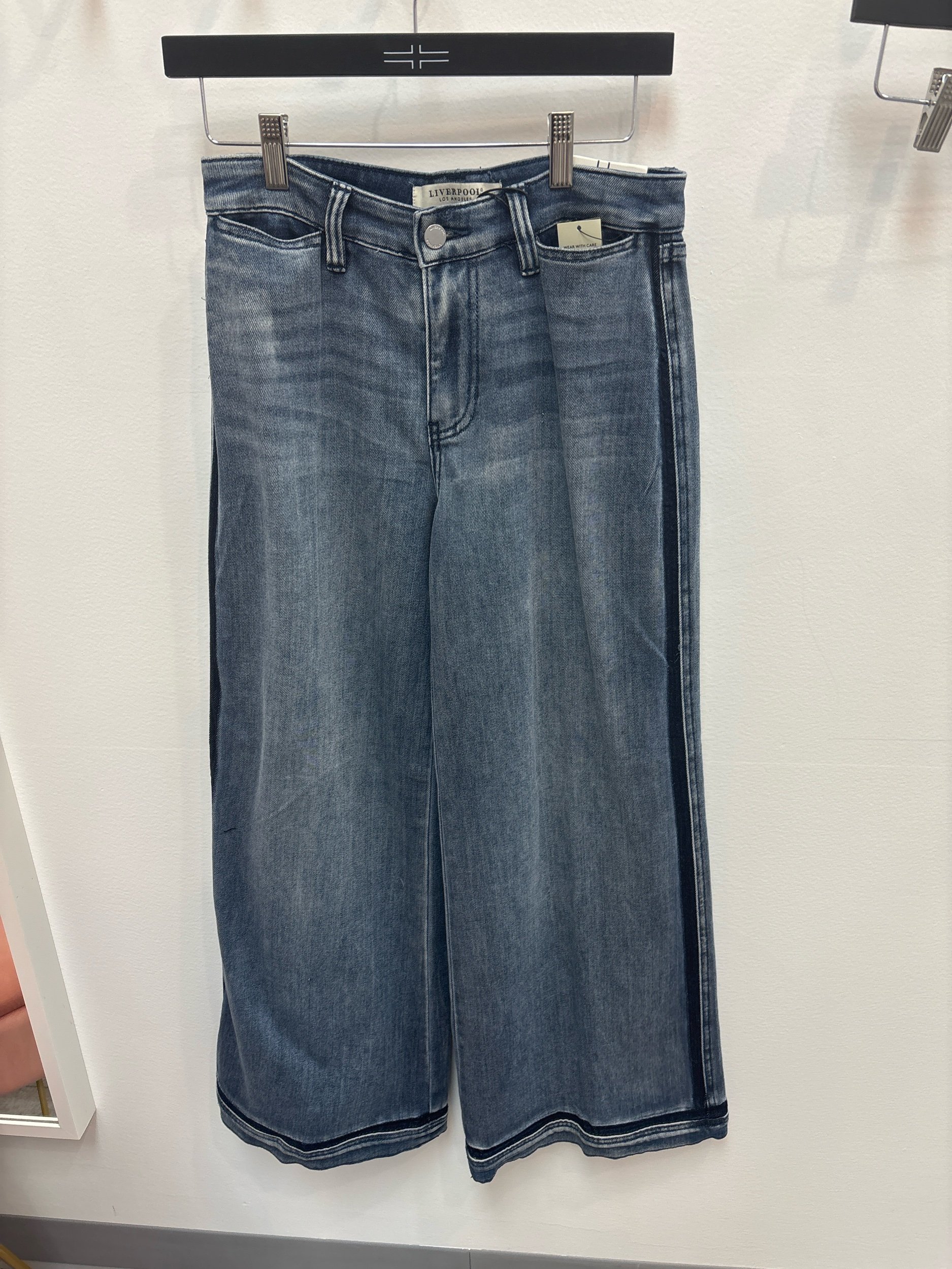 Image 1 of 3 Image 2 of 3 Image 3 of 3 Liverpool Wide Leg Reflection $129.00 Wide leg jeans style LM7B31SSL color reflection. Dark stripe down the side and across the bottom. Size: 0 2 4 6 8 10 12 16 Quantity: Purchase Added! Wide leg jeans style LM7B31SSL color reflection. Dark stripe down the side and across the bottom.